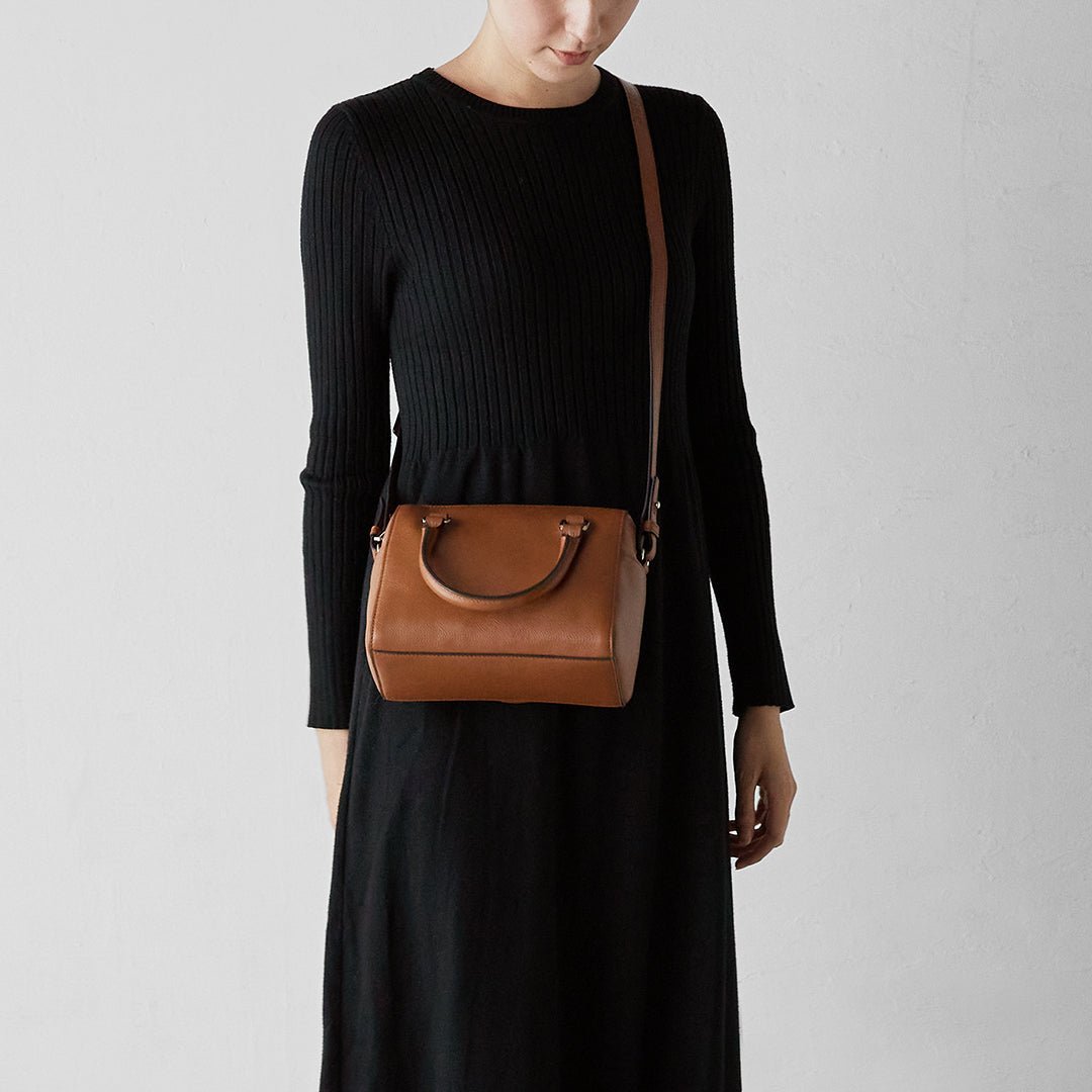 A 2-way mini Boston bag accented with edgy colors. The new model has been renewed to a smaller size while still having enough storage space to hold a long wallet or a drink bottle. The plump form and basic colors can be enjoyed with a wide range of styles. from elegant to casual.